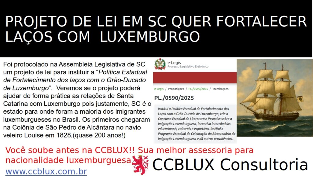 Torcemos para que o projeto possa de alguma forma aumentar mais a integração de SC com Luxemburgo. O projeto completo de lei pode ser visto neste link.