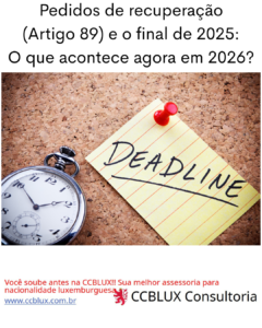 Os pedidos através do artigo 23 (mãe/pai ou avó/avô que é ou era luxemburguês) ou artigo 7 (transmissão automática da nacionalidade) continuam abertos e sem prazo para pedir o direito. Somente encerrou em 2025 a assinatura das pessoas que se enquadravam no artigo 89.